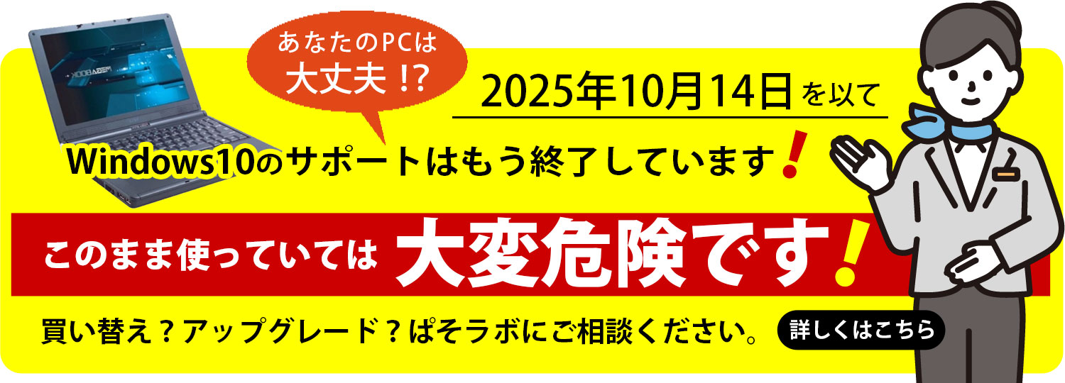 Windows 10 は 2025 年 10 月 14 日にサポート終了となります。ぱそラボでは殆どの機種がWindows11に正式対応しています。