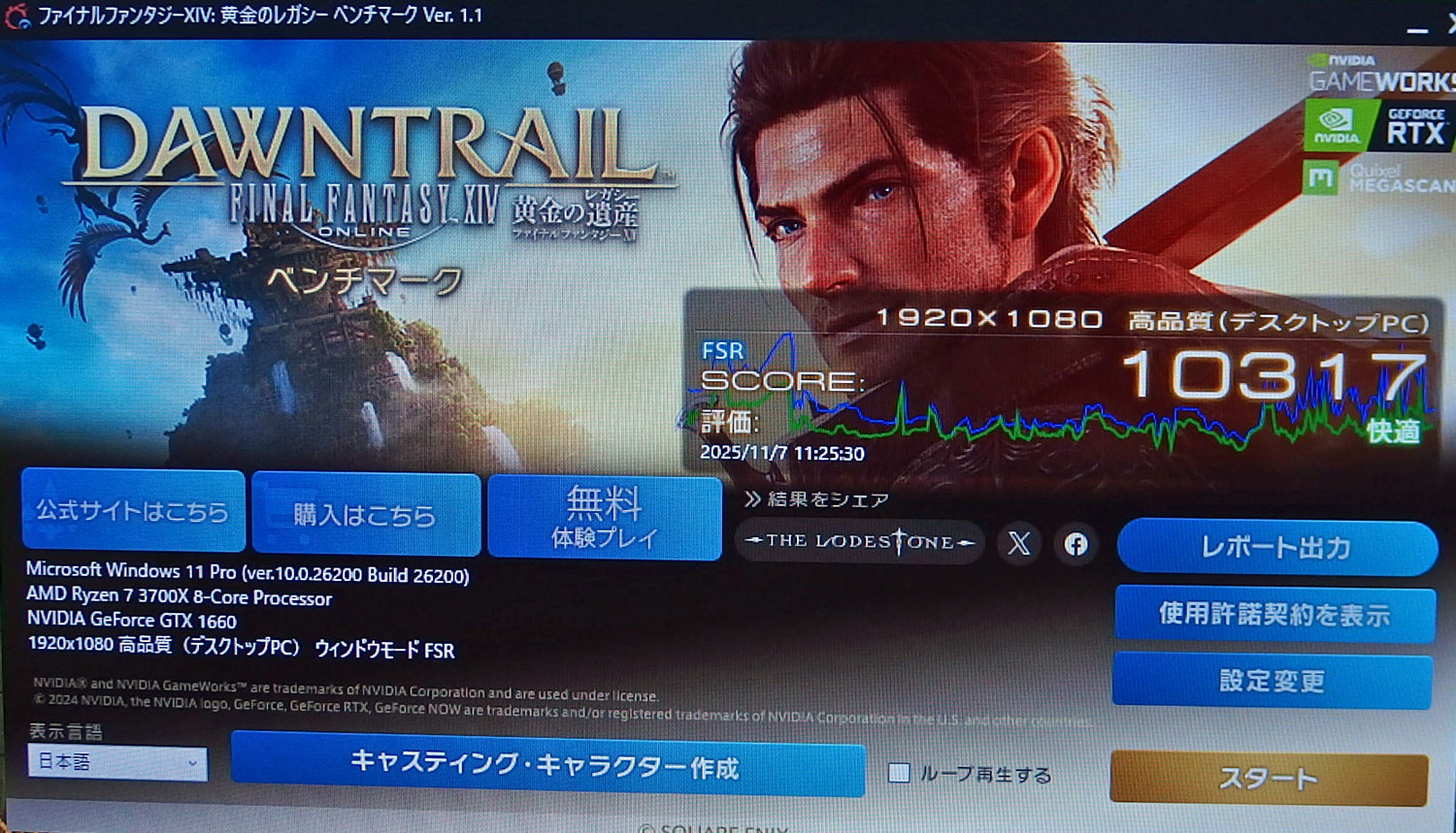 グラフィック:GeForce GTX1660 6GB GDDR5