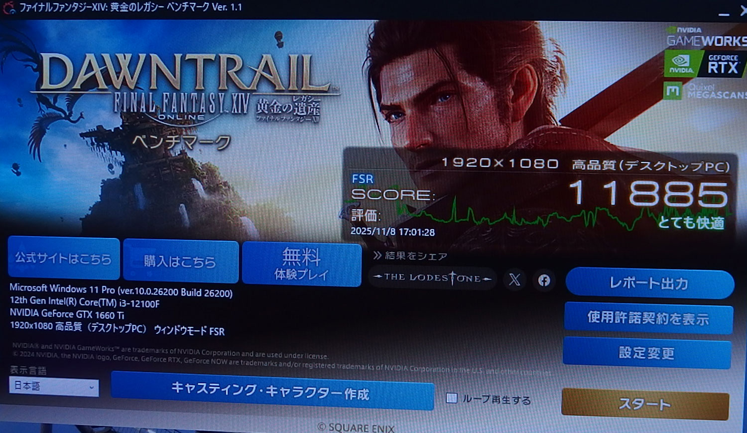 ゲーム性能が優秀なCore i3-12100 FとGTX1660Ti搭載で