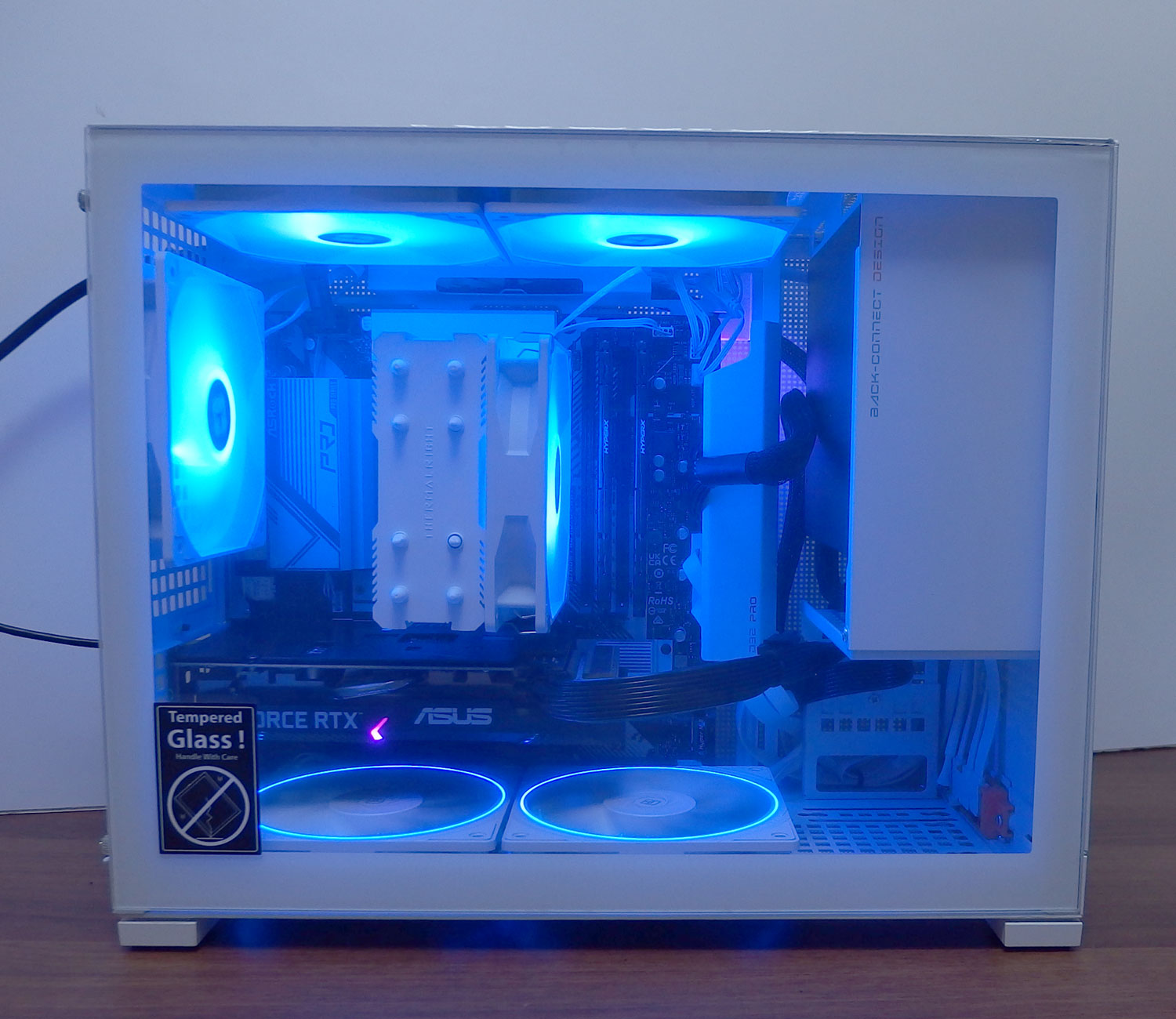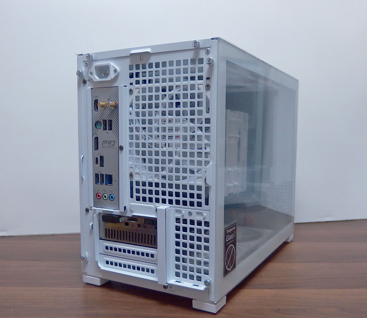 側面が簡単に開閉できる強化ガラスのコンパクトなPCケース使用。