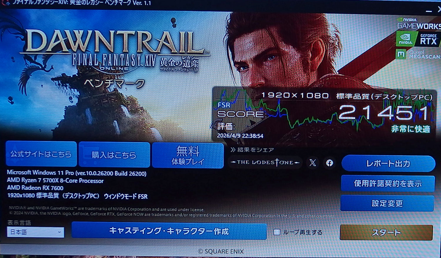 Radeon RX7600搭載で日常使いから各種ゲームまでこなせます。